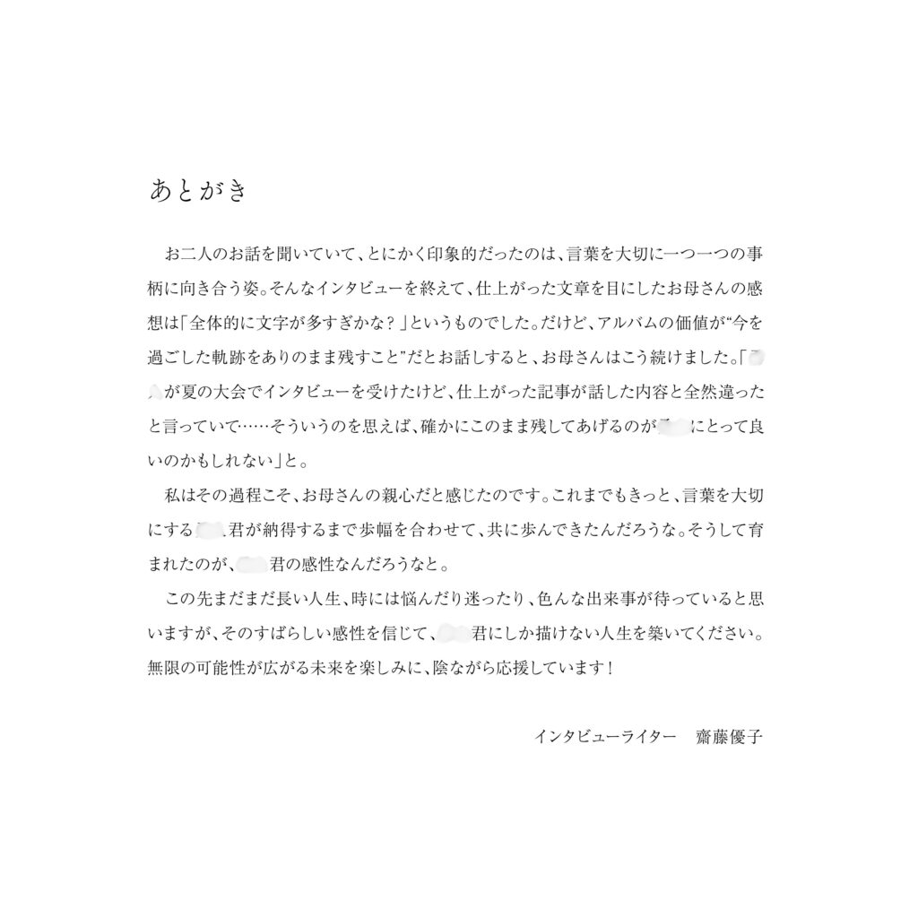 親子の対話を残したアルバムのあとがきはお母さんのご希望で、ライターの私からメッセージを綴らせていただきました。